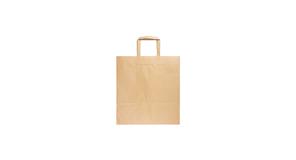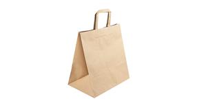 Bolsa de papel Kraft con asa plana. Recomendada para optimizar el transporte de todo tipo de productos, envases o comercio en general.