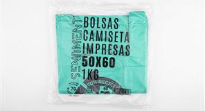 Esta bolsa de plástico con asa de tipo camiseta, con un diseño blanco y estampado verde, es la solución perfecta para negocios que buscan una opción práctica y sostenible para el transporte de productos. Fabricada con un 70% de material reciclado, contribuye activamente a la reducción del impacto ambiental, ayudando a tu empresa a adoptar prácticas de consumo más responsables.